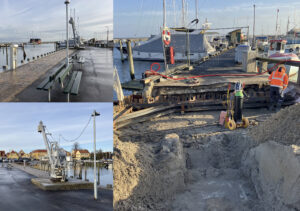 Indsejlingen til Årøsund Havn var præget af nedbrudte spunsvægge og for stor vanddybde ift. hvad de eksisterende konstruktioner var projekteret